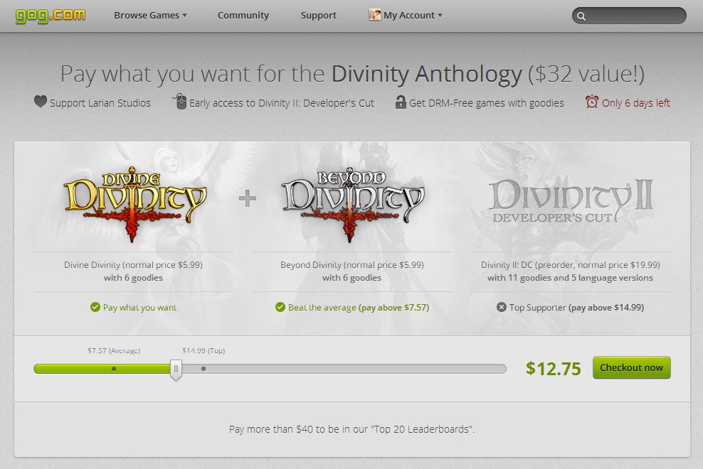 That’s nice of them, they offer Divinity Anthology as Pay What You Want for next 6 days. The minimum you have to pay is $1 which is great I guess. Certain amounts of money unlock other things as you can see on the screenshot below: