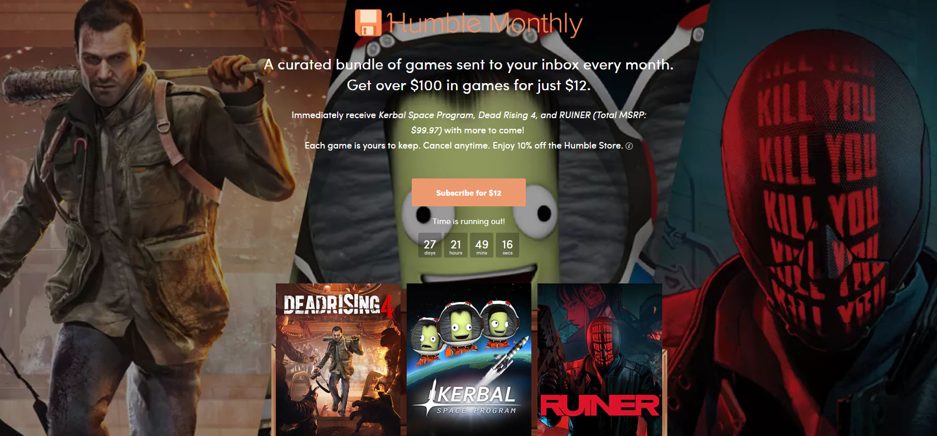 Humble Monthly Early Unlock games for May are: Kerbal Space Program, Dead Rising 4, and RUINER! This is a really nice offer :)