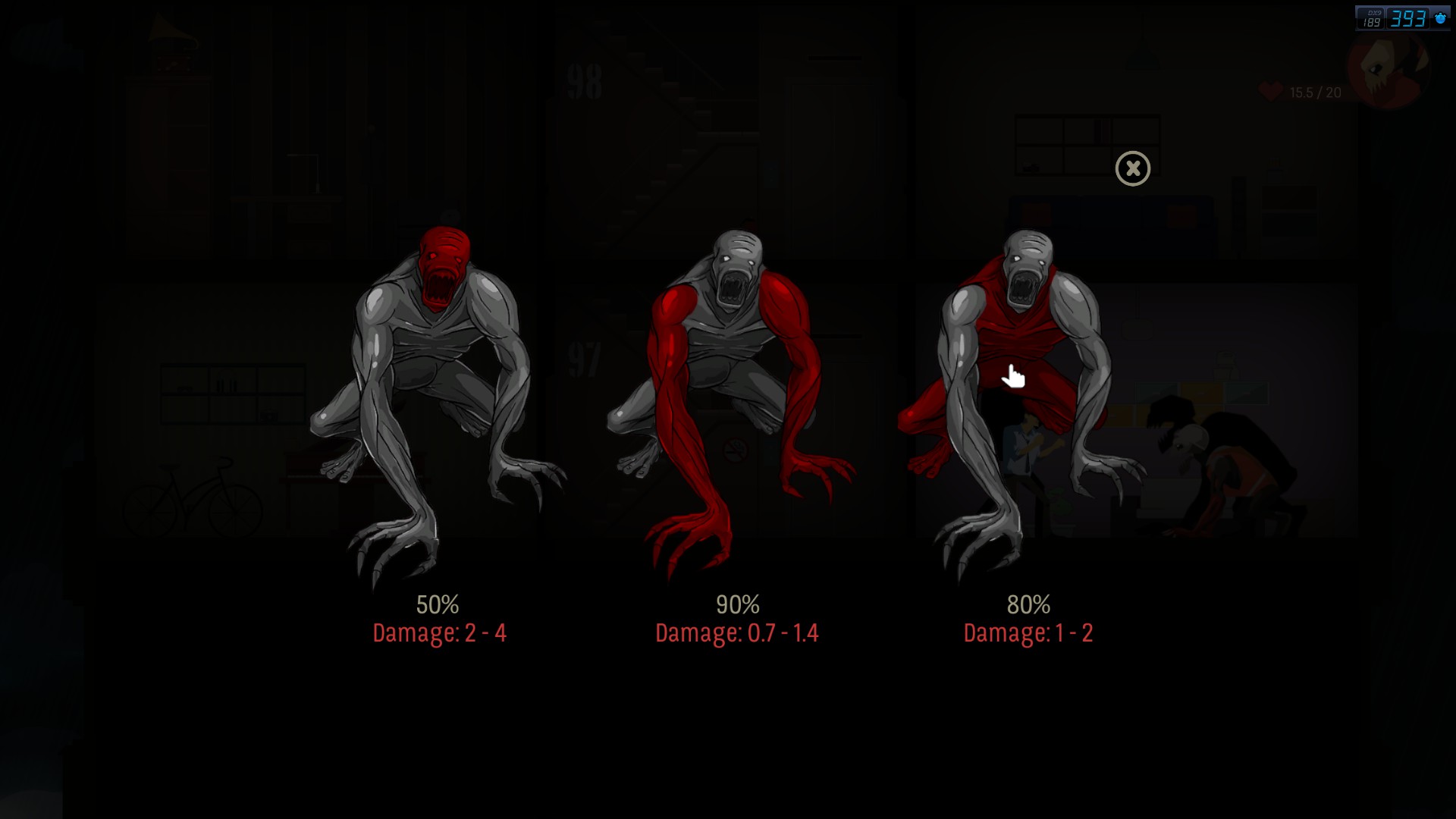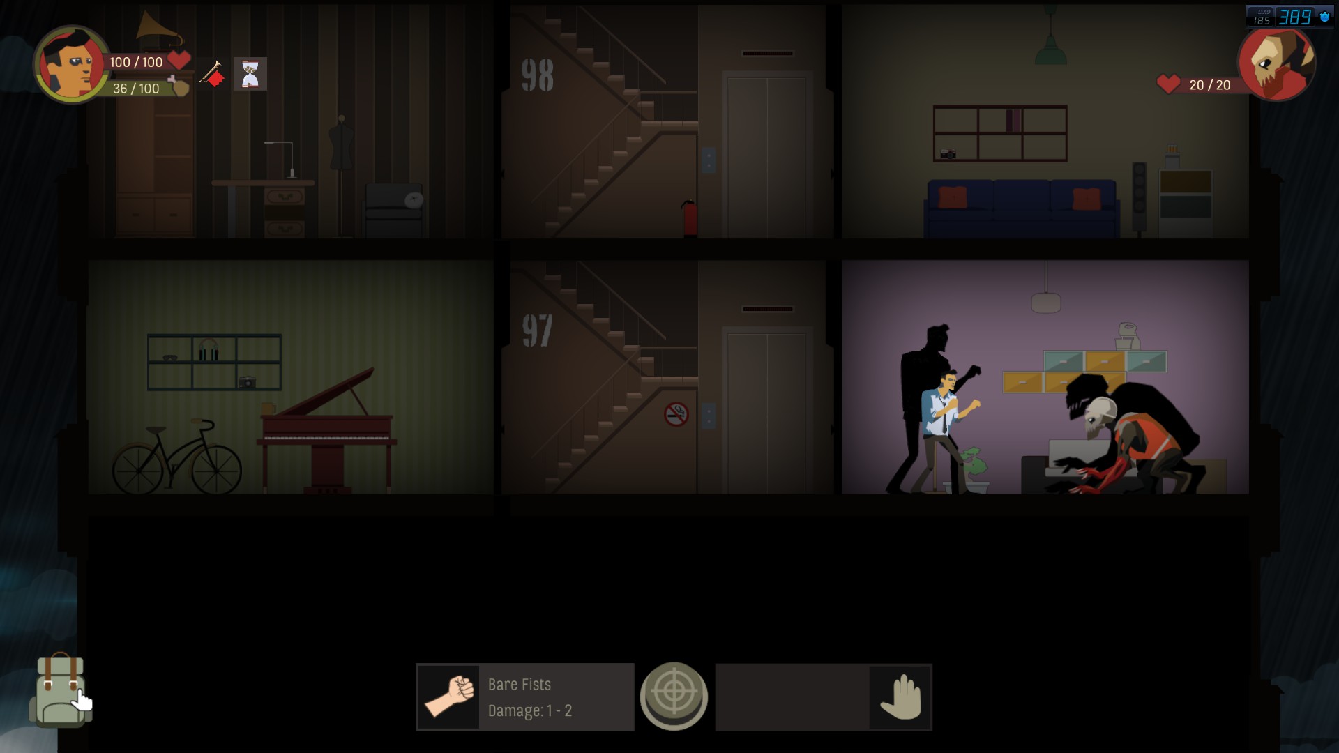 The game itself is turn based. All levels are always randomly generated which is a good thing. Moving from room to room takes 1 point of your food supplies so you gotta think before you go to any location, you have to scavenge for food, pills or other things to eat. You will meet a lot of monsters on your way that will try to kill you.