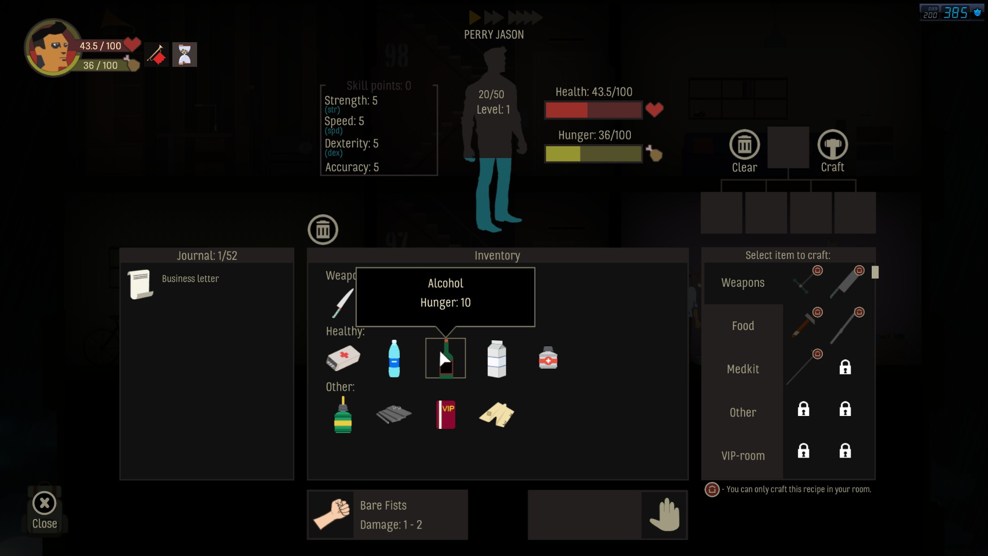 However by looking around the rooms you can find some handy weapons (knives, wooden sticks etc.) or craft something like an axe for example.