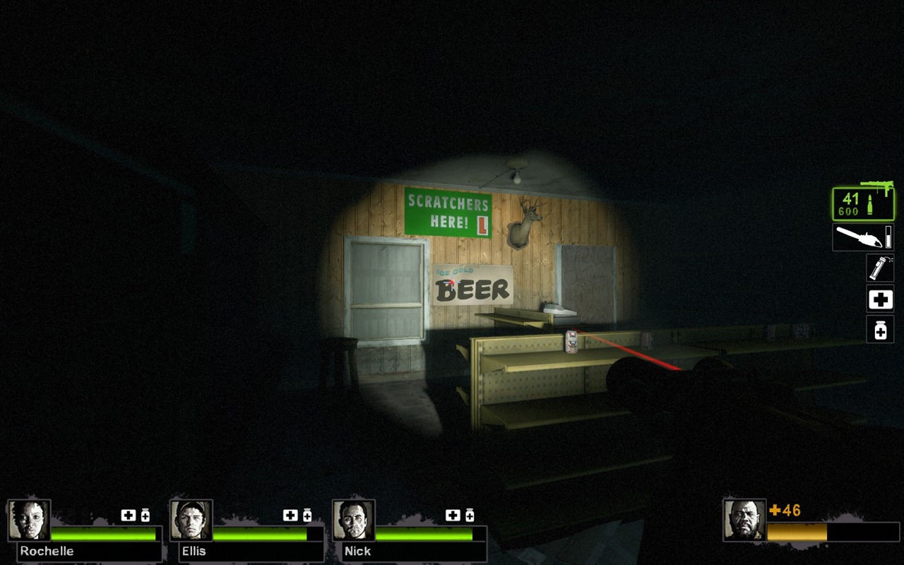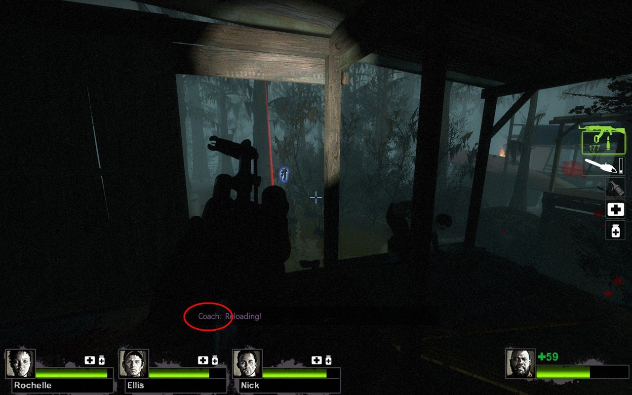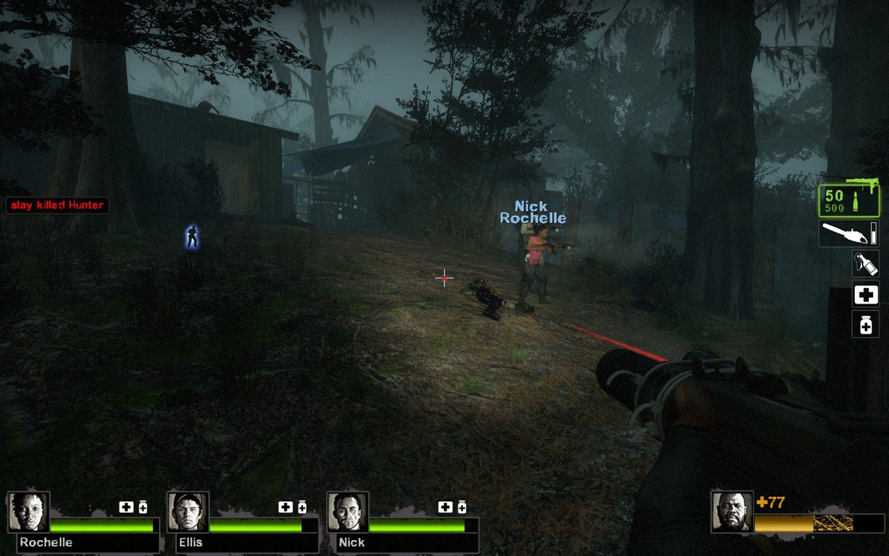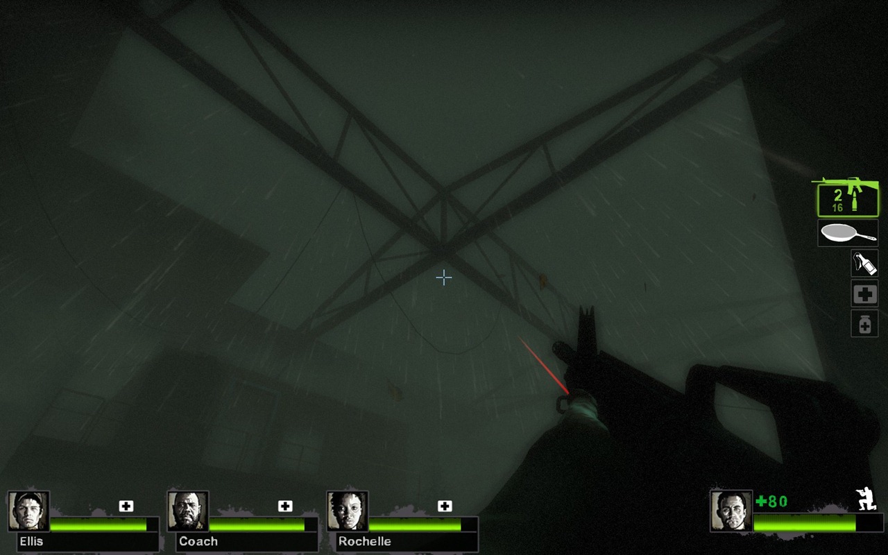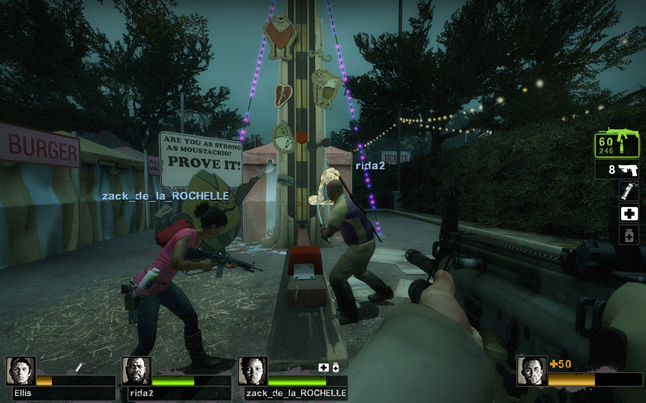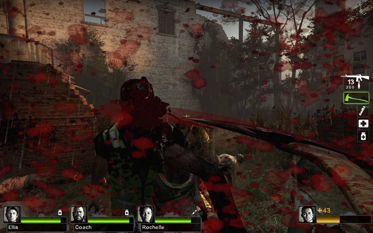 Sometimes few of them doesn’t follow and take a break to watch the stars or jerk off, I don’t know exactly, what the hell they do when they must run for their lives. Situation: everybody were in safe room and Ellis was just standing outside the house, in the middle of the parking lot and guess what, doing nothing! I went and kicked his ass, shot him in the face, but nothing. Then I lured Boomer or Hunter on him and only then, after killing horde and reviving him, he realized, oh, there is a god damn safe-house, where he must go! And there was no Charger to punch him inside the wall, from he cannot break free. Unfortunately I didn’t do any screenshot then…