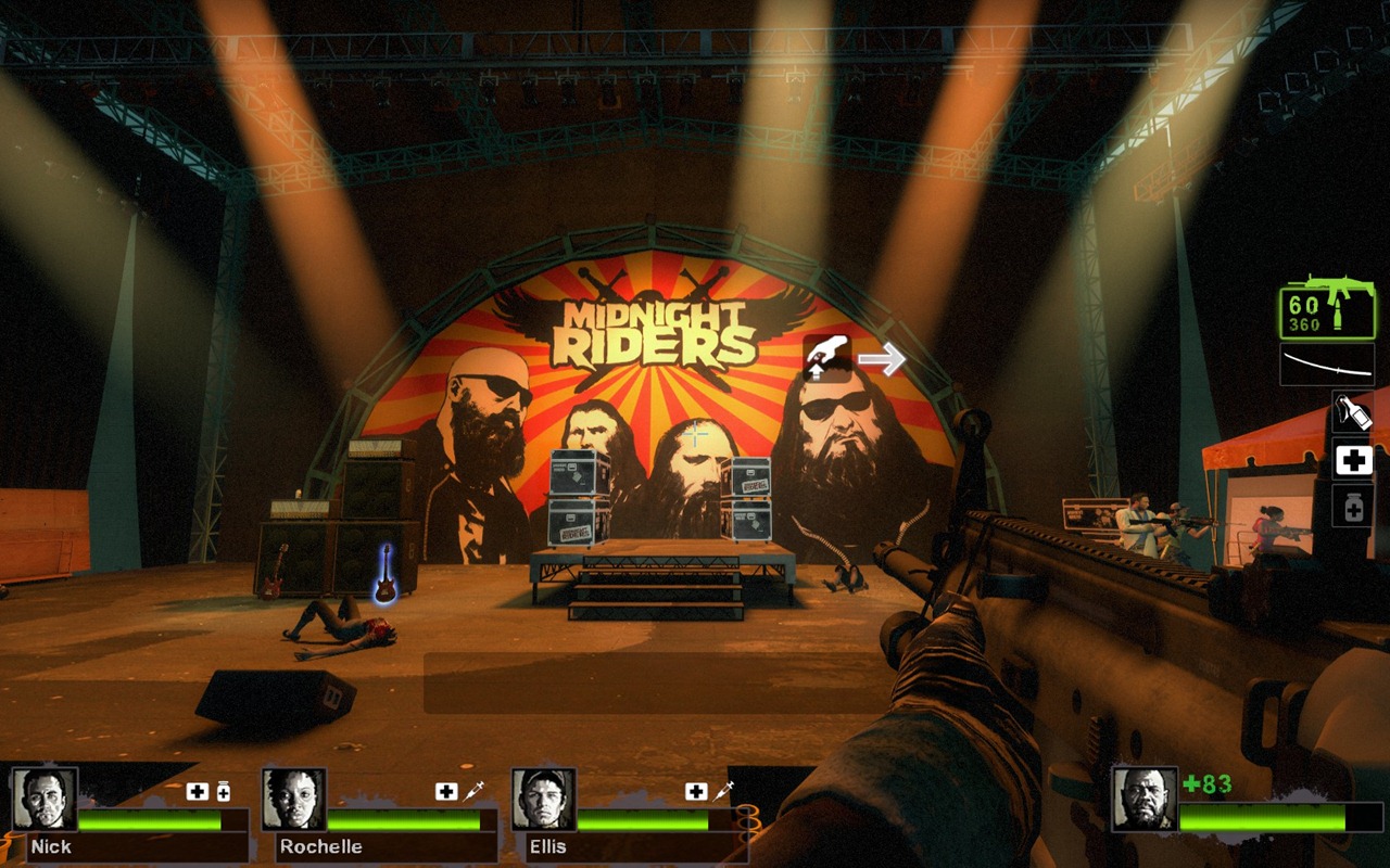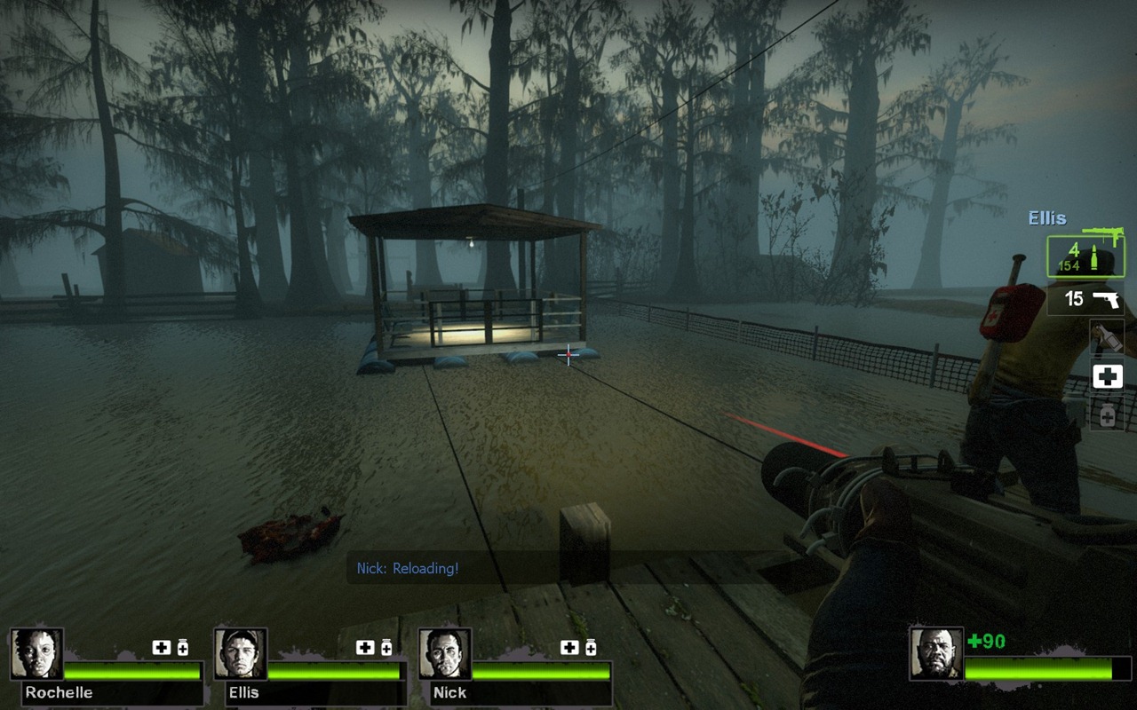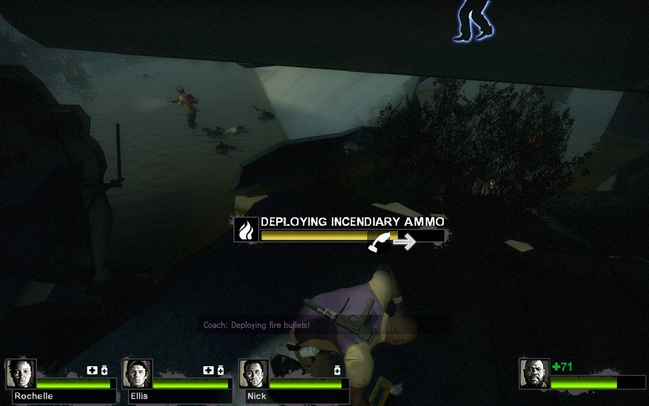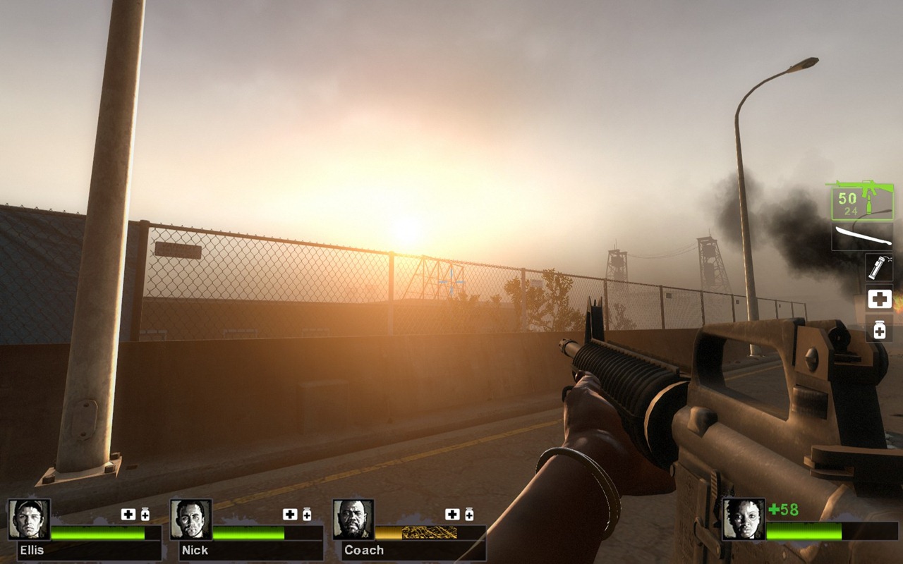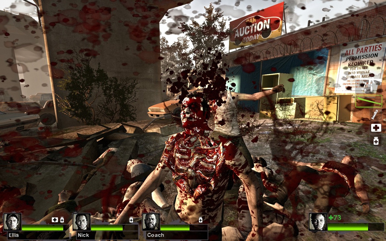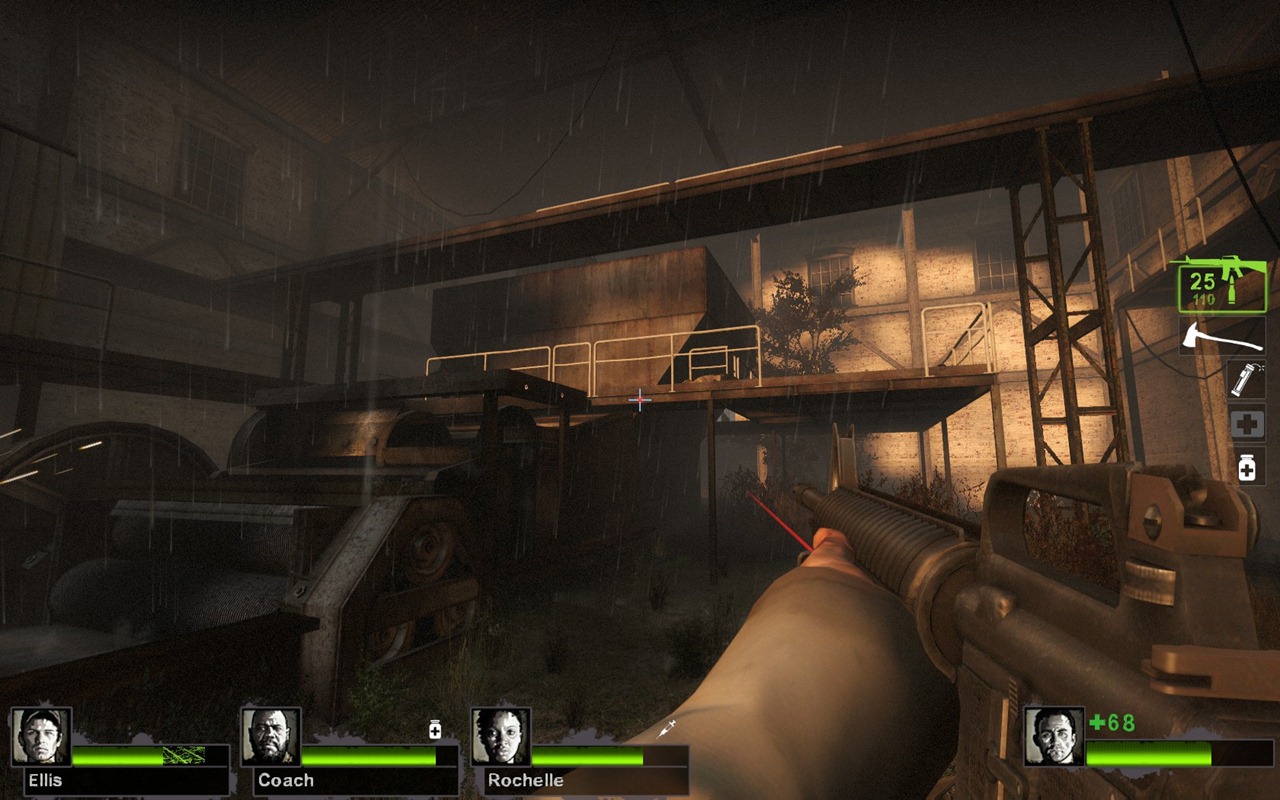 Sometimes few of them doesn’t follow and take a break to watch the stars or jerk off, I don’t know exactly, what the hell they do when they must run for their lives. Situation: everybody were in safe room and Ellis was just standing outside the house, in the middle of the parking lot and guess what, doing nothing! I went and kicked his ass, shot him in the face, but nothing. Then I lured Boomer or Hunter on him and only then, after killing horde and reviving him, he realized, oh, there is a god damn safe-house, where he must go! And there was no Charger to punch him inside the wall, from he cannot break free. Unfortunately I didn’t do any screenshot then…