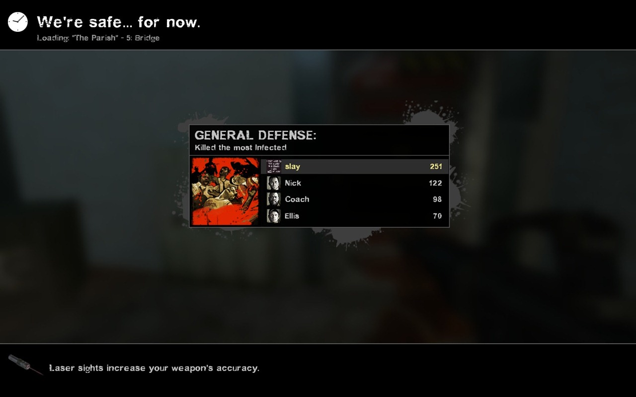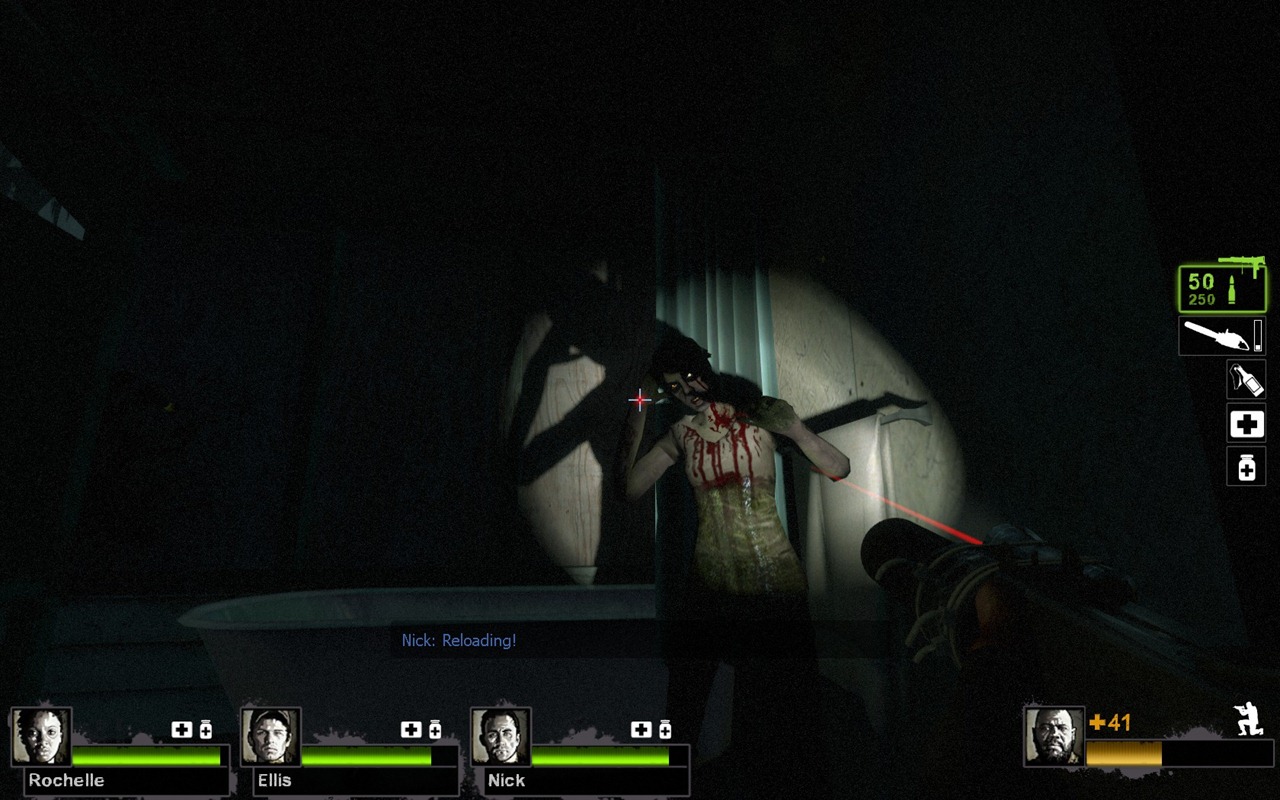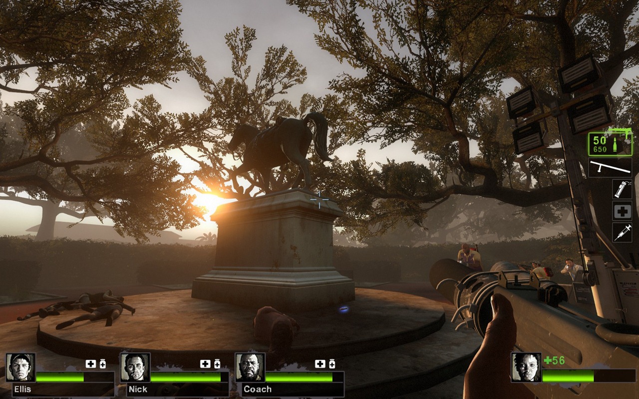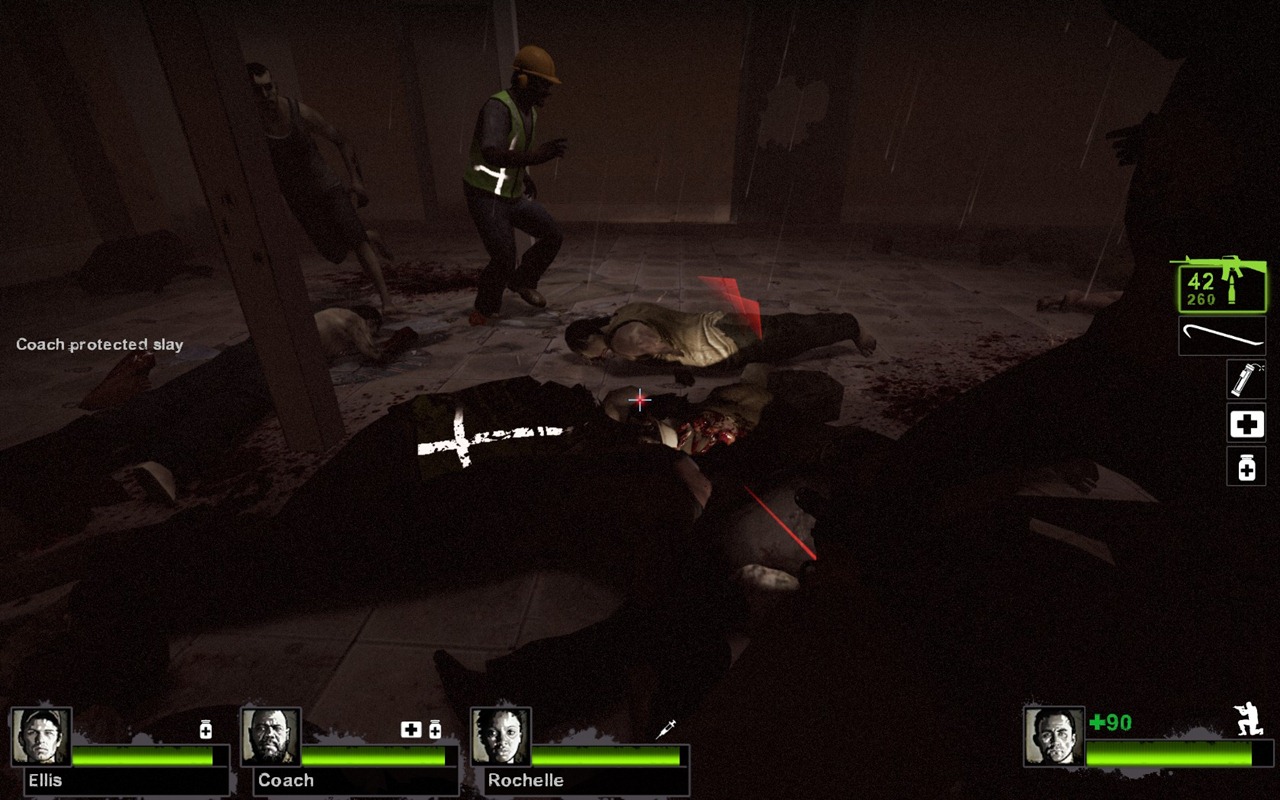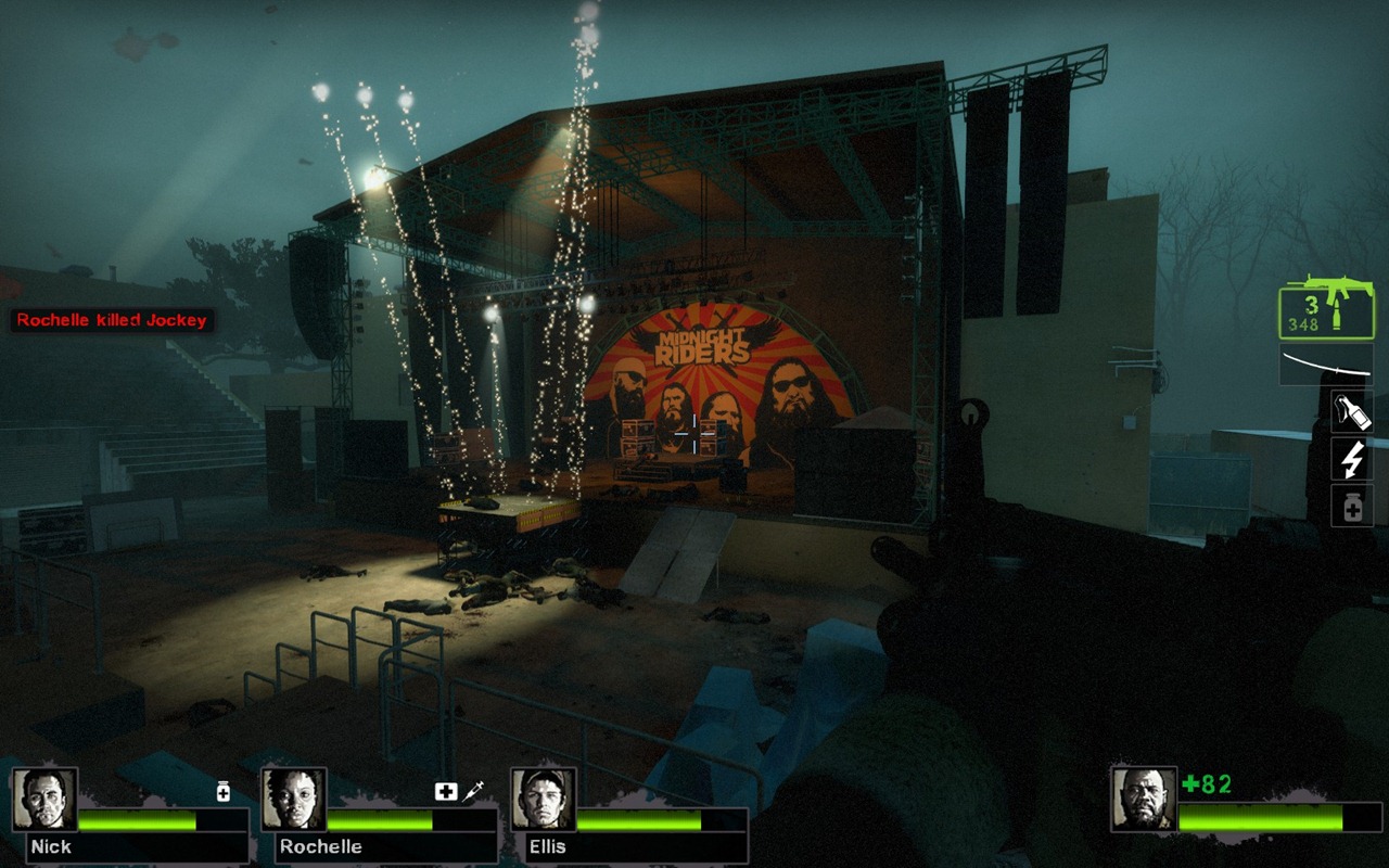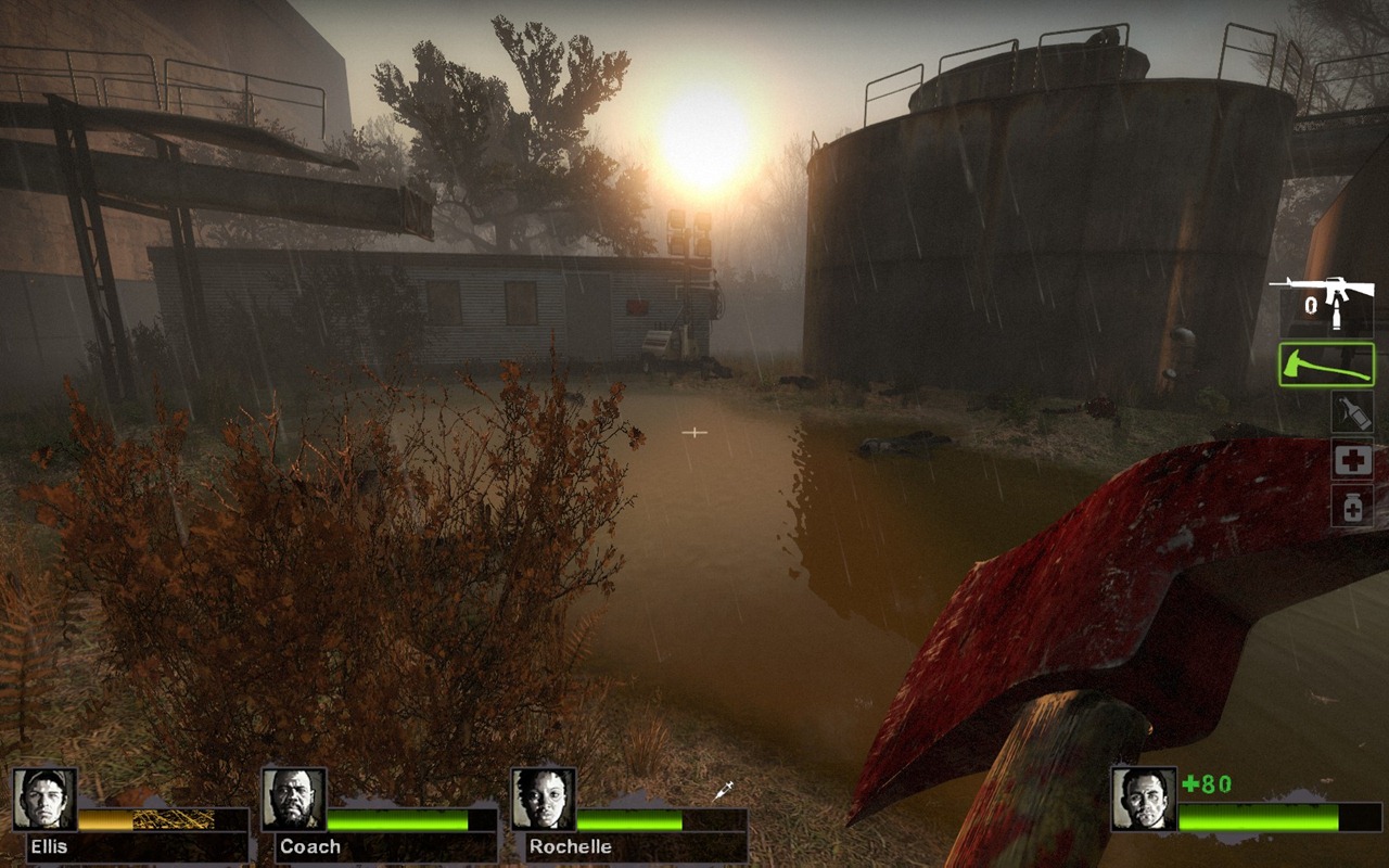 Sometimes few of them doesn’t follow and take a break to watch the stars or jerk off, I don’t know exactly, what the hell they do when they must run for their lives. Situation: everybody were in safe room and Ellis was just standing outside the house, in the middle of the parking lot and guess what, doing nothing! I went and kicked his ass, shot him in the face, but nothing. Then I lured Boomer or Hunter on him and only then, after killing horde and reviving him, he realized, oh, there is a god damn safe-house, where he must go! And there was no Charger to punch him inside the wall, from he cannot break free. Unfortunately I didn’t do any screenshot then…