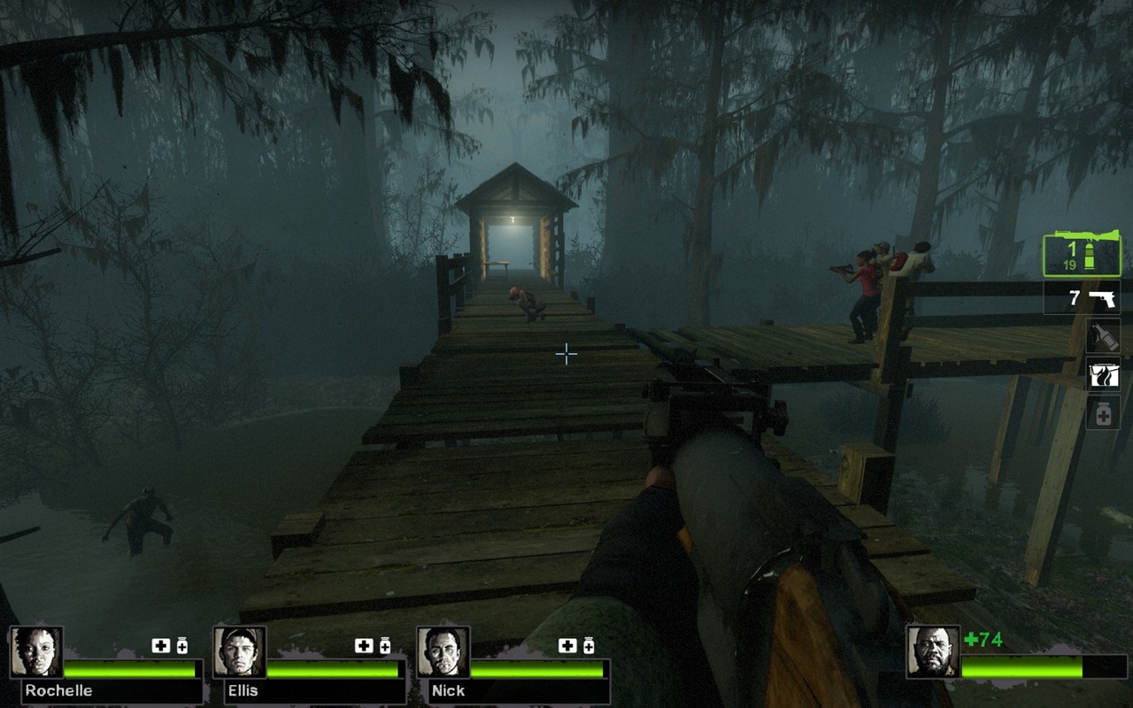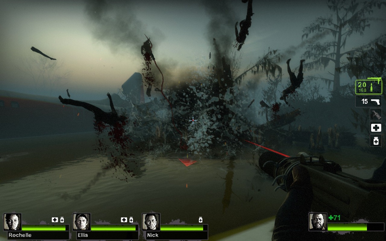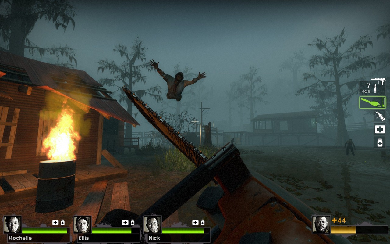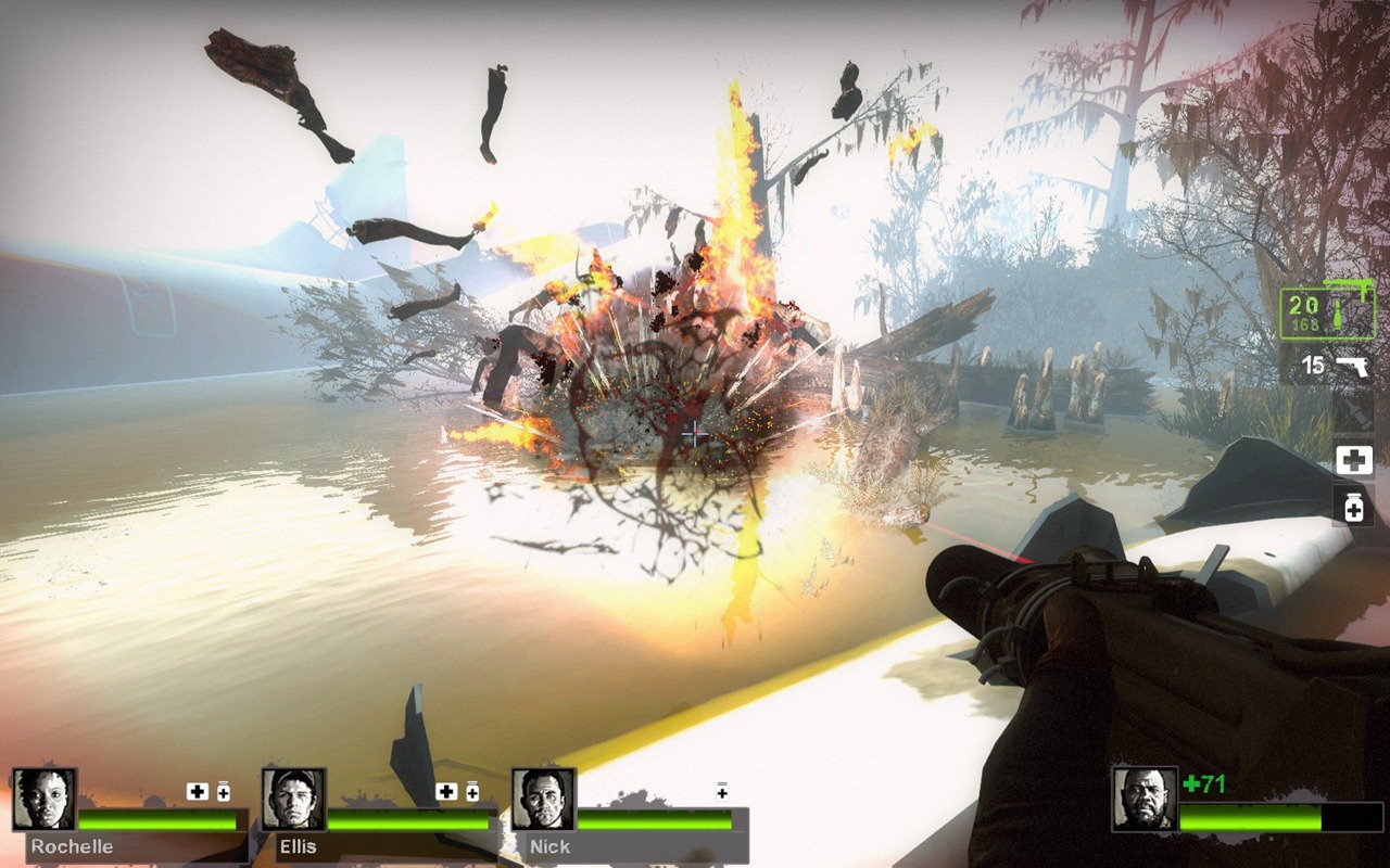 Left 4 Dead 2 has new and really cool features, but game itself is filled with several bugs. You may get stuck inside a wall/table or and cannot move! Your AI controlled team members are morons of the year and do not always stick with you, so can happen that if you are incapacitated, you’ll watch your player to be totally wiped out, because AI bots cannot calculate the right way and will not come to rescue you! When somebody starts a fire, your AI controlled moron may walk right inside that fire and start screaming in pain and lose hitpoints! You probably remember that video that was posted here before, where human player fell over the edge of balcony and team of morons came to “help” him up, two of them stumbled and fell over the edge too and then the last AI idiot jumped over the edge and fell down, I mean totally down. And similar things happen very often. I think that Valve polished their Director so much but didn’t even try to make AI controlled bots smarter and competitive.