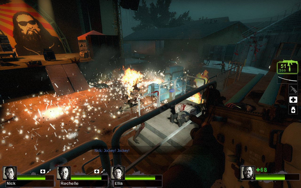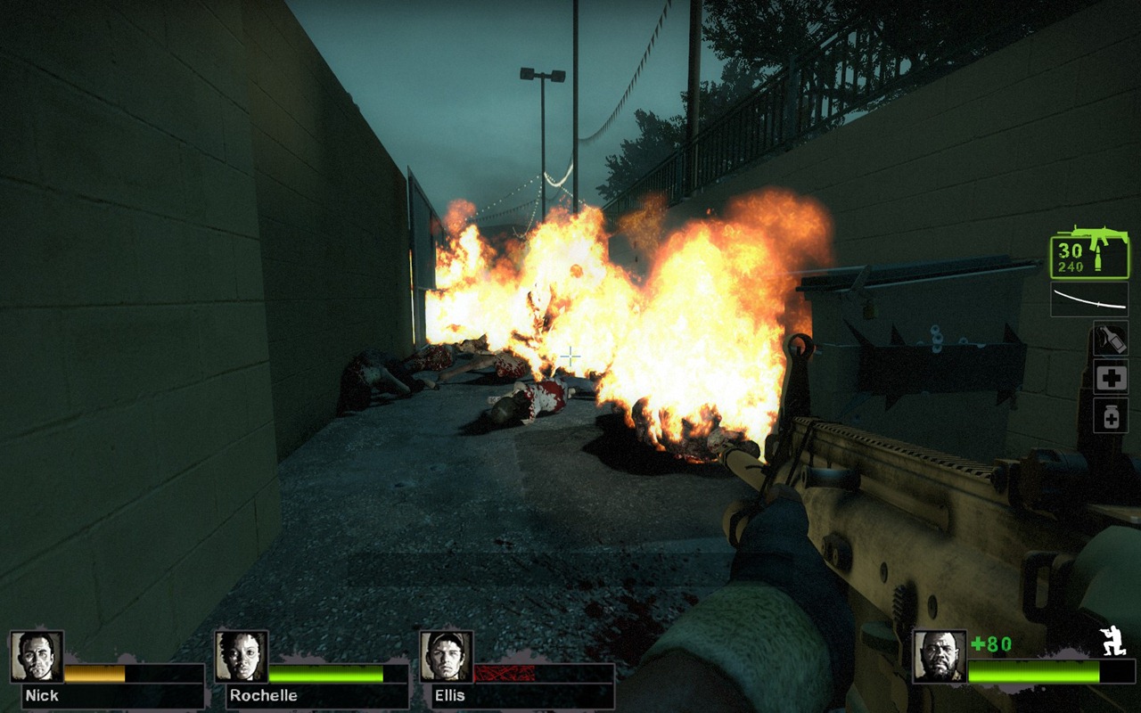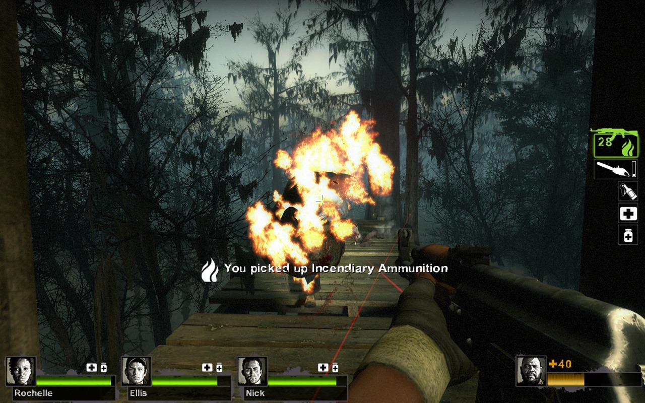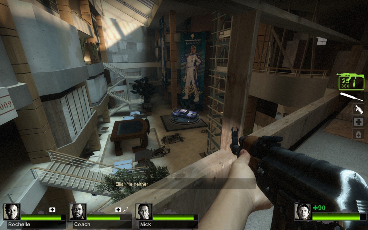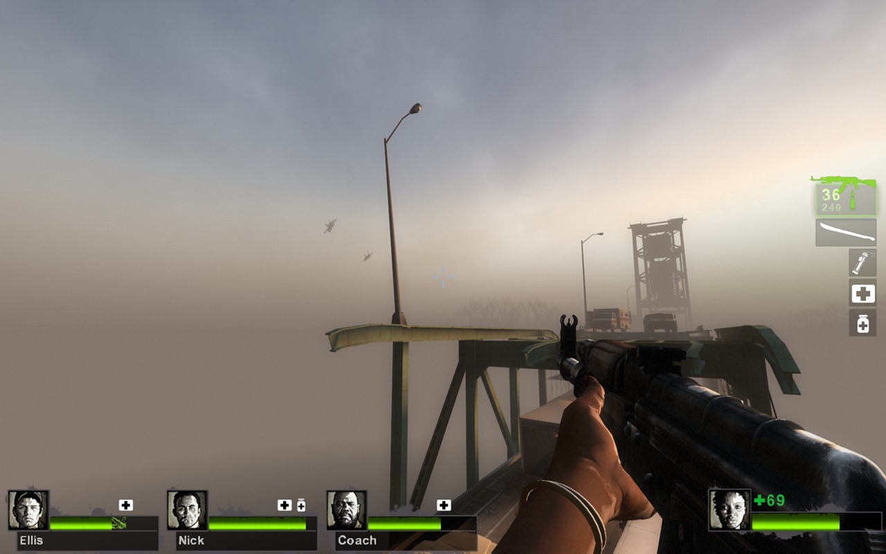 Left 4 Dead 2 has new and really cool features, but game itself is filled with several bugs. You may get stuck inside a wall/table or and cannot move! Your AI controlled team members are morons of the year and do not always stick with you, so can happen that if you are incapacitated, you’ll watch your player to be totally wiped out, because AI bots cannot calculate the right way and will not come to rescue you! When somebody starts a fire, your AI controlled moron may walk right inside that fire and start screaming in pain and lose hitpoints! You probably remember that video that was posted here before, where human player fell over the edge of balcony and team of morons came to “help” him up, two of them stumbled and fell over the edge too and then the last AI idiot jumped over the edge and fell down, I mean totally down. And similar things happen very often. I think that Valve polished their Director so much but didn’t even try to make AI controlled bots smarter and competitive.