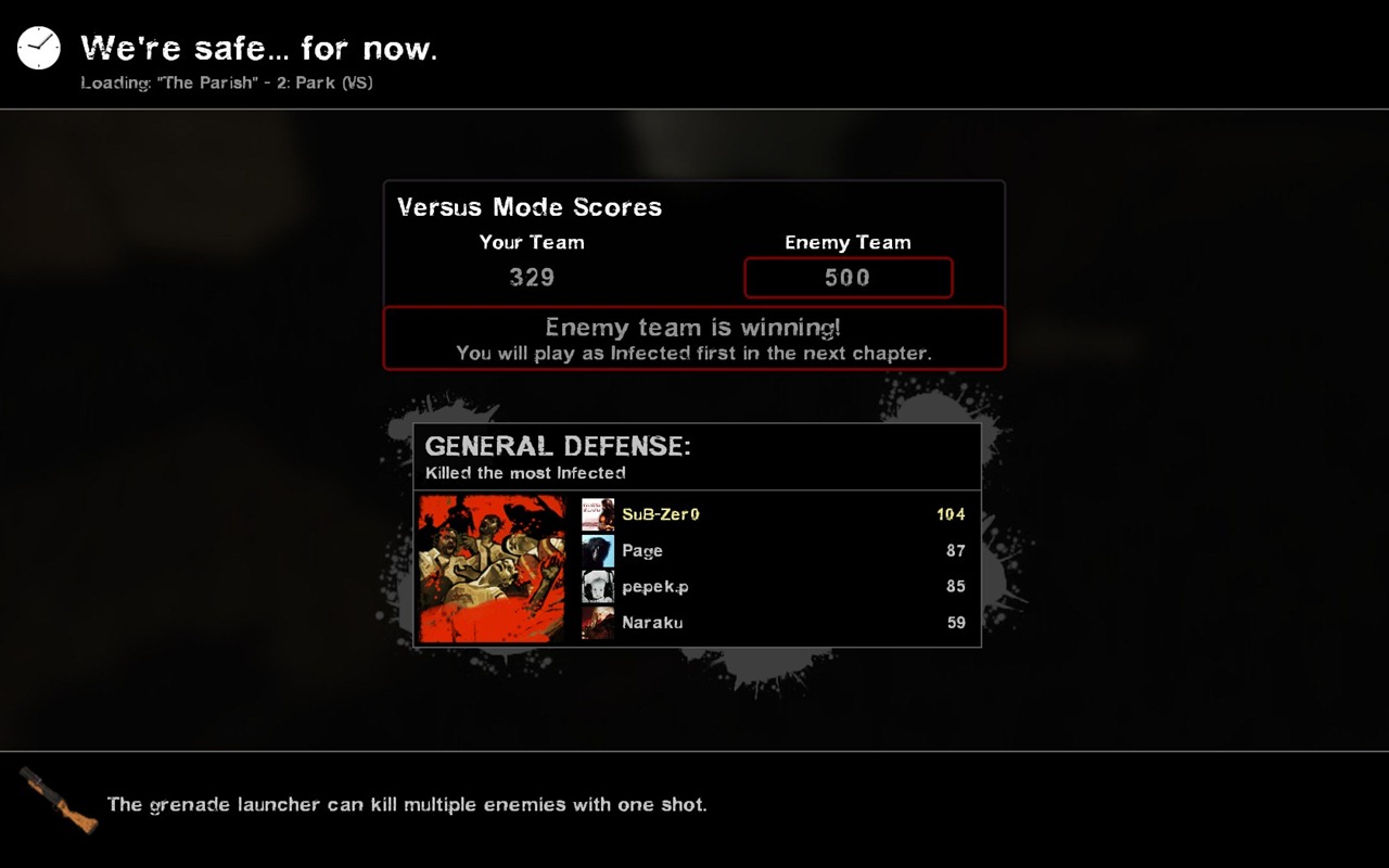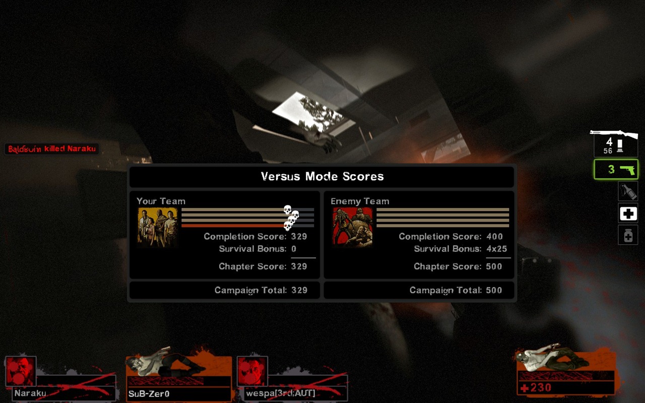 Scavenger mode is a probably most funniest type of a game. Survivor team must fill their goal and Infected team must do everything that the other team cannot fulfill their goal. There game/lobby leader can define the win conditions – single match, best of 3 or best of 5.