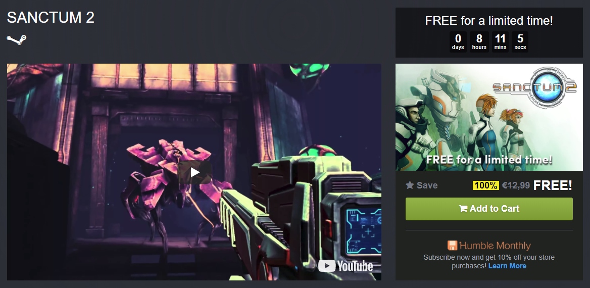 Still a couple of hours left for the giveaway to end. Sanctum 2 is available for FREE in here.