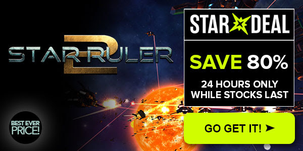 Star Ruler 2 is today’s Star Deal on Bundle Stars! Control hundreds of planets, manipulate galactic politics and command thousands of units in this massive scale 4X real-time space strategy. It’s got a Very Positive Steam rating, get 80% off now! Get it right here.