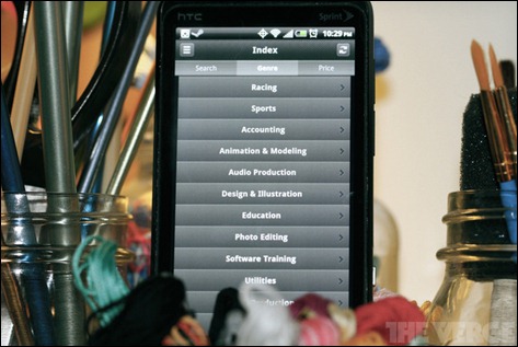 The "Genre" section of the app’s index lists genres like "accounting, education, software training," and "photo editing," with a total of ten additional categories over those shown in the Steam desktop client — though none of the categories contain any software.