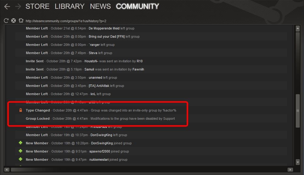 * And now this. At the same day, when Walter replied to me, our steam community group got changed to invite-only, so no users can join without invitation.